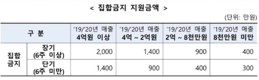집합금지 지원금액은 어떻게 될까?